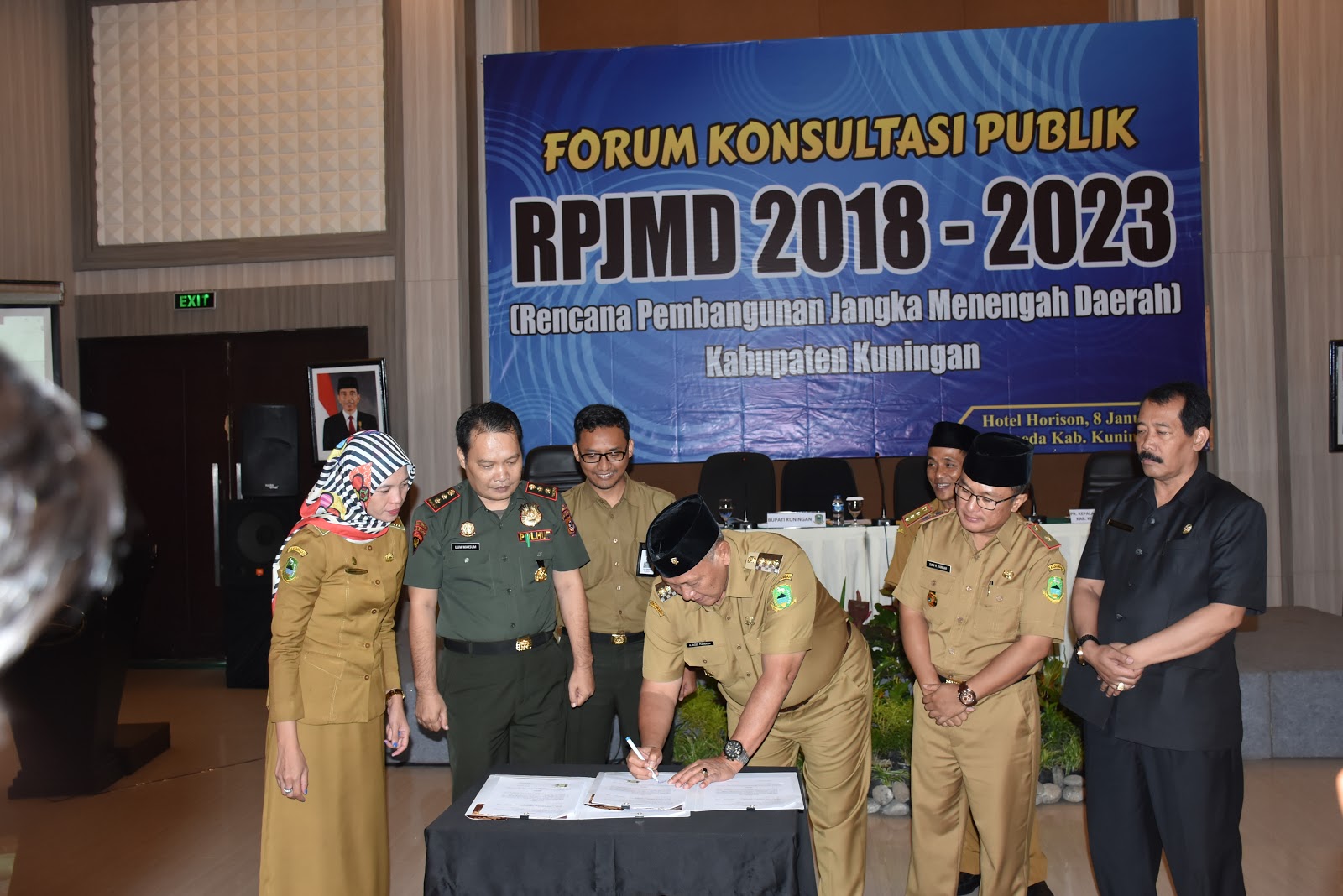 Lima tahun kedepan akan menjadi upaya bersama untuk mewujudkan Visi Pembangunan Kabupaten Kuningan, yaitu Kuningan Maju (Ma’mur, Agamis, Pinunjul) berbasis Desa Tahun 2023. Hal itu disampaikan Bupati Kuningan, H. Acep Purnama di Forum Konsultasi Publik Rencana Pembangunan Jangka Menengah Daerah (RPJMD) 2018-2023 yang diselenggarakan oleh Bappeda Kab. Kuningan, di Horison, Selasa (8/1/2019).